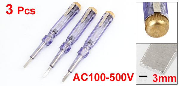 3Pcs AC100-500V 3mm Slotted Voltage Tester Pen Electroprobe Screwdriver