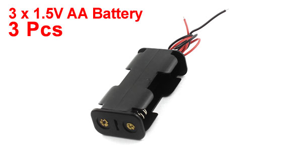Details3Pcs Black 2 x 1.5V AA Battery Batteries Holder Case w Wire Leads  Main Color Black Brand DMiotech Net Weight 23g Country of Manufacture CHINA Package Content 3 x 1.5V AA Battery Case Material Plastic, Electric Part Cable Length( Each ) 14.5cm/5.7" Dimension 57 x 29 x 17mm/2.2" x 1.1" x 0.67"(L*W*T) Battery Type AA Battery