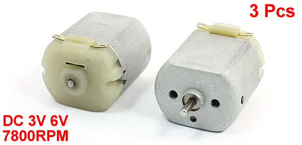 Product Name DC Motor Model NO. 260 Rated Voltage DC 3V 6V Speed 7800RPM Body Size 27 x 20 x 15mm / 1.1" x 0.8" x 0.6"(L*W*T) Shaft Size 7.5 x 2mm/ 0.3" x 0.08"(L*D) Total Length 37mm / 1.5" Main Color Silver Tone Main Material Metal Weight 82g Package 3 x DC Motor - Reviews