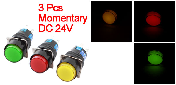 3Pcs DC24V Pilot Light Momentary Round Pushbutton Switch w Wiring Terminals