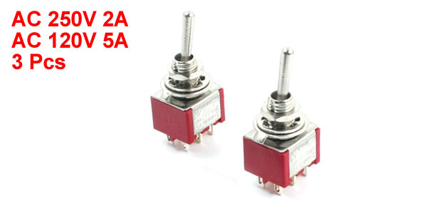 Details3pcs DPDT 2 Positions ON/ON Auto Motor Rocker Toggle Switch AC250V 2A 120V 5A  Product Name Toggle Switch Type DPDT (Latching) Position 2 Positions(ON/ON) Voltage, Current AC 250V 2A