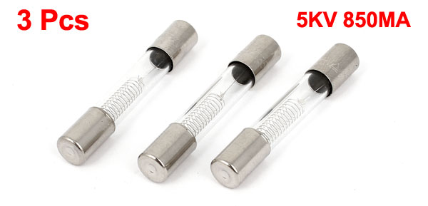 3Pcs Glass Tube Fuse High Voltage 0.85A 5kV 6mm x 40mm for Microwave Oven