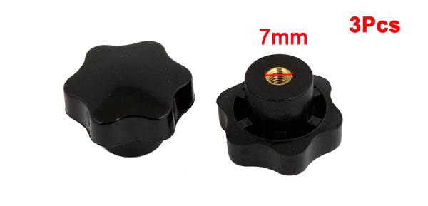 3pcs Gold Tone Metal 7mm Thread Dia Nonslip Plastic Fluted Knob Black