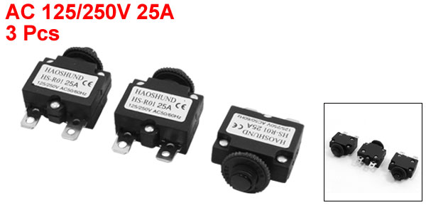 3Pcs HS-R01 AC 125/250V 25A 2 Terminal Reset Button Thermal Overload Protector