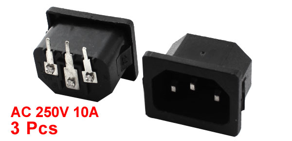 3pcs IEC 320 C14 Male Plug Inlet Panel Socket Connector Adapter 10A 250V