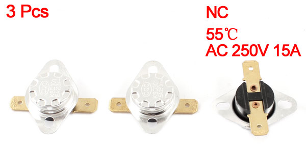 3Pcs KSD301 2 Pin Terminal 55C Temperature Control Switch Thermostat AC 250V 15A