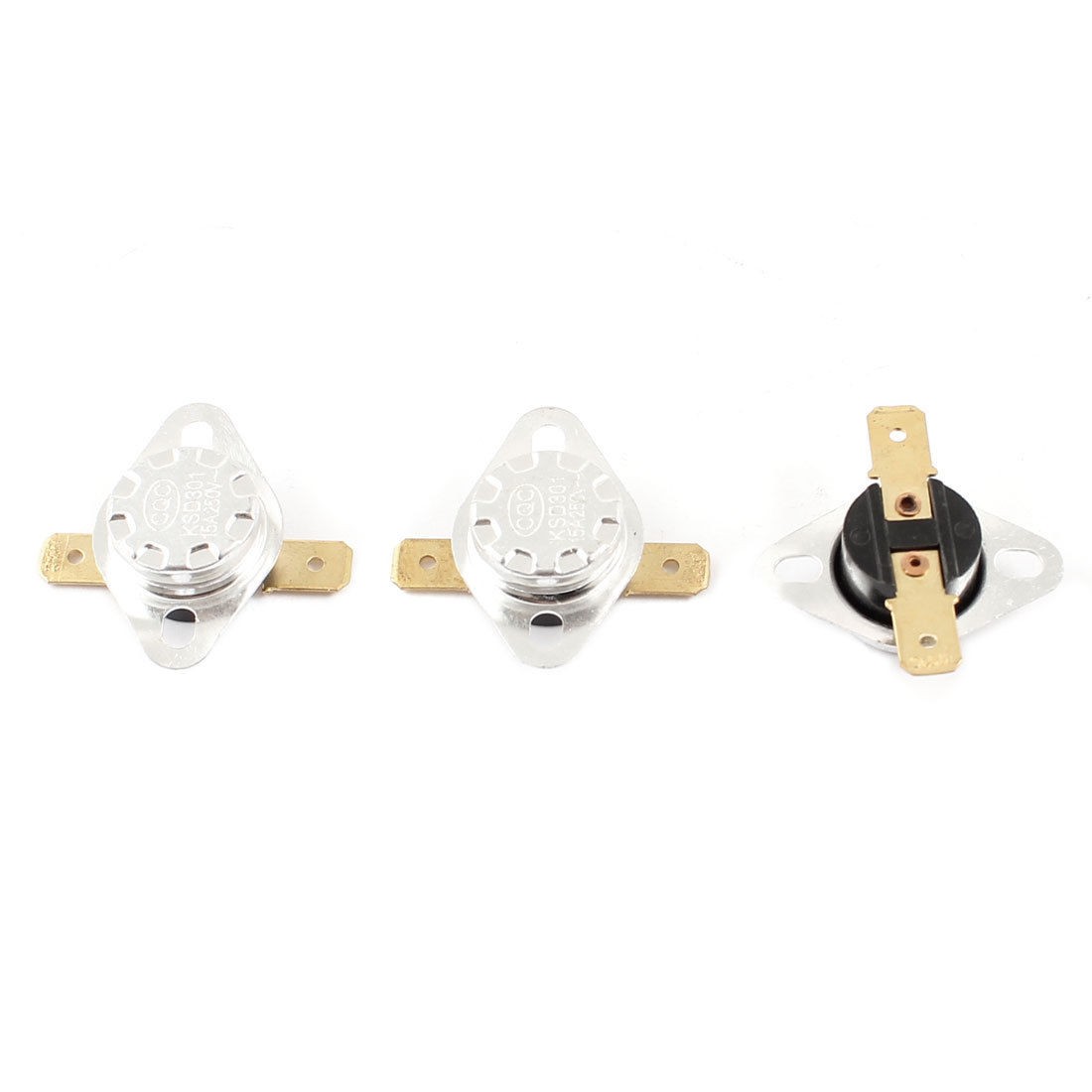 Product Name Temperature Control Switch Thermostat Model.No KSD301 Action Type NC Action Temperature 55C Voltage AC 250V 15A Size(Each) 3.3 x 3.2 x 1.2cm/1.3" x 1.3" x 0.7"(L*W*T) Mounted Size 5 x 3mm/0.2" x 0.12"(L*W) Mounting Hole CenterDistance 2.4cm/0.94" Material Metal, Plastic Color Black, Silver Tone Net Weight 13g Package Content 3 x Temperature Control Switch Thermostat - Reviews