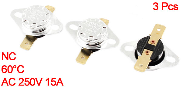 3Pcs KSD301 2 Pin Terminal 60C Temperature Control Switch Thermostat AC 250V 15A