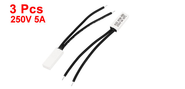 Main Color Black, White Brand DMiotech Country of Manufacture CHINA Model KSD9700 Cable Length 7cm/2.7" Contact NC (Normal Close) Material Plastic, Bimetal Product Name Temperature Control Switch Net Weight 8g Package Content 3 x Temperature Control Switch Rating 250V 5A Head Dimension 20 x 8 x 4mm/0.78" x 0.31" x 0.16"(L*W*T) Max Rated Disconnection Temperature 55 C - Reviews