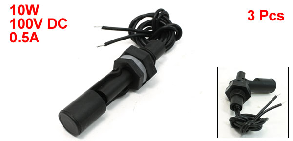 Product Name Floating Switch Model No. ZPC5 Max Contact Rating 10W Max Switching Voltage 100V DC Max Switching Current 0.5A Max Breakdown Voltage 220V DC Max Carry Current 1A Max Contact Resistance 100mΩ Temperature Rating -10 / +85 °C Material Plastic, PP Thread Dia(Approx) 16mm / 0.63" Thread Length 18mm / 0.7" Switch Total Length 85mm / 3.3" Cable Length 34cm / 13.4" Color Black Net Weight 68g Package Content 3 x Floating Switch - Reviews