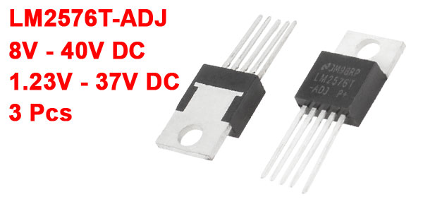 Product Name Voltage Regulator Model No. LM2576T-ADJ Input Voltage 8V - 40V DC Output Voltage 1.23V - 37V DC Output Current 3000 mA Pin Number 5 Pin Length 13mm / 0.5" Pin Spacing Pitch 1mm / 0.04" Total Size 30 x 10 x 4.5mm / 1.18" x 0.4" x 0.18" (L*W*H) Operating Temperature Range -40°C-125°C Weight 7g Package 3 x Voltage Regulator - Reviews