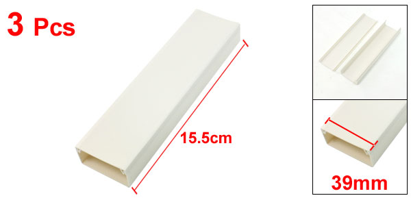 Product Name Cable Raceway Color White Inner Width 38mm/ 1.4" Inner Height 16mm/ 0.6" Outer Height 18mm/ 7/16" Outer Width 39mm/ 1 1/2" Length ( approx.) 15.5cm/ 6.1" Material Plastic Weight 95g Package 3 Pcs x Cable Raceway - Reviews