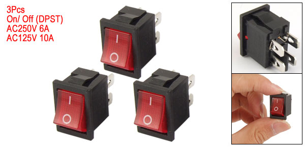 3pcs Red Light 4 Pin DPST ON-OFF Snap In Boat Rocker Switch 6A/250V 10A/125V AC