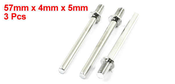 3pcs Silver Tone 57mm Long 4mm Dia 5mm Thread Diameter Steel Wheel Axle