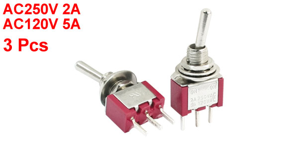 AC120V 5APosition 2 Position(ON/ON) Mounting Hole Diamter 6mm / 0.24" Main Body Size 13 x 7 x 9mm / 0.51" x 0.28" x 0.35"(L*W*H) Overall Height 35mm / 1.4" Material Metal & Resin Color As Picture Shown Weight 15g Package Content 3 x Toggle Switches
