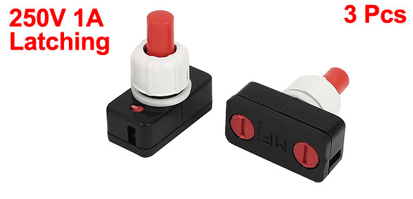 3pcs SPST ON-OFF Latching Red Round Head Push Button Switch AC 250V 1A