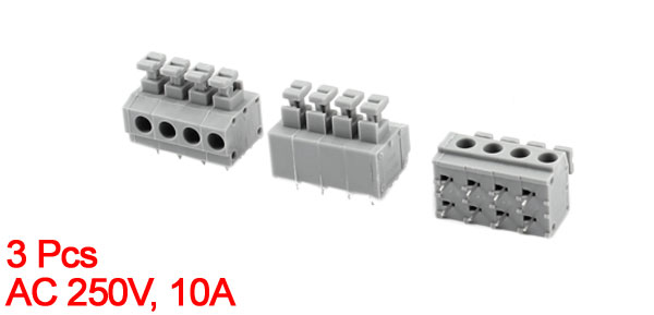 3pcs Straight 4 Positions 5.0mm PCB Board Screwless Spring Terminal Blocks Gray