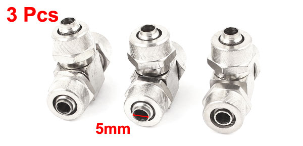 3pcs T Shape 3 Way 5mmx8mm Tube Pneumatic Quick Coupler Connector
