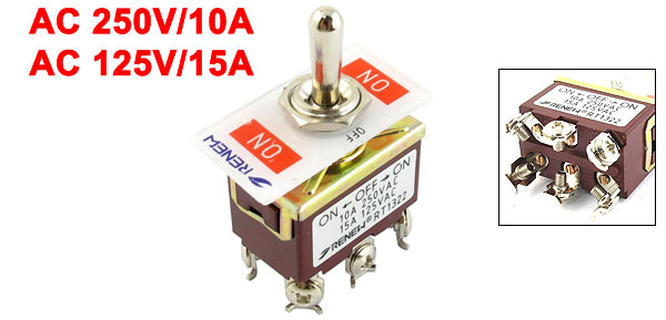 Product Name Toggle Switch Type 3PDT (ON-OF-ON) Position 3 Mounting Hole Diamter 5.8mm / 0.23" Voltage & Current AC 250V/10A