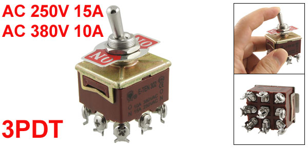 3PDT On/On 2 Position Toggle Switch AC 15A/250V 10A/380V