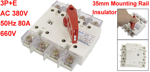 3P+E AC 380V 50Hz 80A 660V Insulator 35mm Mounting Rail Isolating Switch
