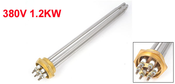Product Name Water Heater Element Shape 3U Tube Bundle Type Main Material Stainless Steel Rated Voltage 380V Power 1.2KW Terminal Number 6 Bar Diameter 8mm / 0.3" Overall Size(Approx.) 39 x 3.7cm/ 15.4" x 1.5"(L*Max.D) Screw Diameter 3.6mm / 0.14" Thread Diameter 45mm/ 1.5" Color Silver Tone, Gold Tone Weight 593g Package Content 1 x Water Heater Element