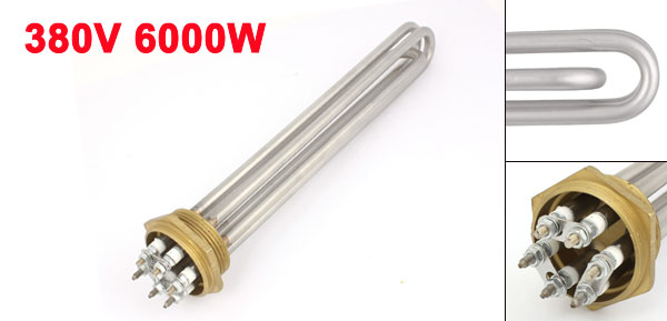 Product Name Water Heater Element Shape 3U Tube Bundle Type Main Material Stainless Steel Rated Voltage 380V Power 6000W Terminal Number 6 Bar Diameter 8mm / 0.3" Overall Size(Approx.) 30 x 3.7cm/ 11.8" x 1.5"(L*Max.D) Screw Diameter 3.6mm / 0.14" Thread Diameter 47mm/ 1.5" Color Silver Tone, Gold Tone Weight 540g Package Content 1 x Water Heater Element