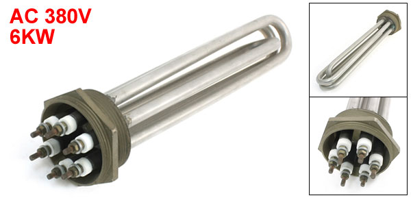 Product Name Water Heater Element Main Material Stainless Steel Rated Voltage AC 380V Power 6KW Tube Diameter 11mm / 0.43" Overall Size(Approx.) 305 x 64mm/ 12" x 2.5"(L*Max.W) Screw Dia 4mm/ 0.16" Male Thread Diameter 61mm / 2.4"