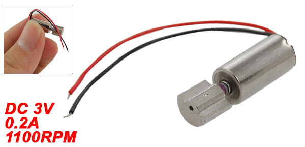 Product Name Vibration Motor Voltage DC 3V Current 0.2A Speed 1100RPM Diameter 6mm/0.23" Size Spec. 6 x 19mm/0.23" x 0.7"(D*L) Cable Length 4cm/1.57" Net Weight 3g Package Content 1 x Mini Vibration Motor - Reviews