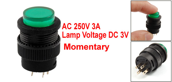 3V Green LED Light Round Cap OFF(ON) NO Momentary Push Button Switch 3A 250V AC