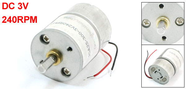 Product Name DC Geared Motor Rated Voltage DC 3V Output Speed 240RPM Shaft Diameter 4mm/ 0.16" Gearbox Part Size 25 x 19mm/ 1" x 0.8"(D*L) Motor Part Size 24 x 13mm/ 1" x 0.51"(D*L) Total Length(Approx) 44mm/ 1.7" Cable Length 5cm/ 2" Material Metal, Electronic Parts Color As Picture Shown Weight 60g Package Content 1 x DC Geared Motor - Reviews