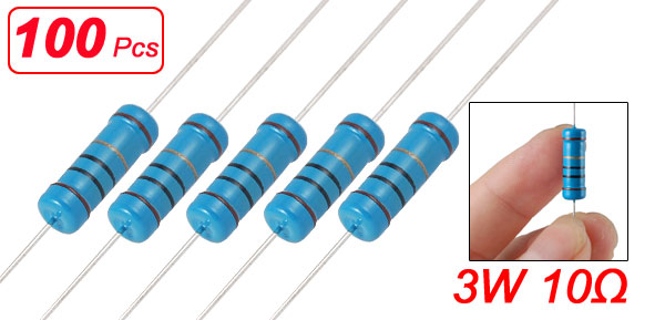 3W 10 Ohm 10R 1% Through Hole Metal Film Resistor 100 Pcs