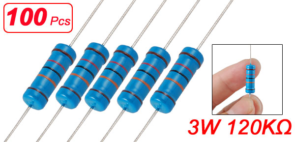 Product Name Metal Film Resistor Rated Power 3W Tolerance ± 1% Resistance Value 120KΩ T.C.R(Temperature Coefficient) ±50ppm/°C Body Size 5 x 16mm/0.2" x 0.61" (D*L) Leads Dia (Approx.) 0.5mm/0.019" Total Length (Approx.) 79mm/3.1" Color As Picture Shown Net Weight 140g Package Content 100 Pcs (± 2%) x Metal Film Resistors - Reviews