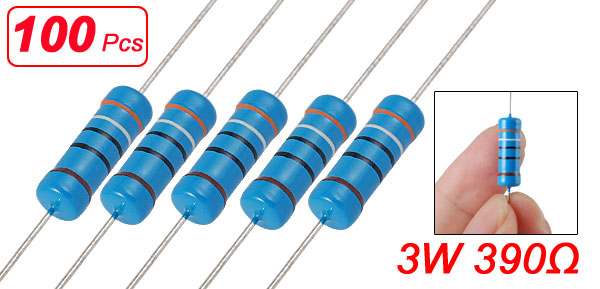 Product Name Metal Film Resistor Rated Power 3W Tolerance ± 1% Resistance Value 390Ω T.C.R(Temperature Coefficient) ±50ppm/°C Body Size 5 x 16mm/0.2" x 0.61" (D*L) Leads Dia (Approx.) 0.5mm/0.019" Total Length (Approx.) 79mm/3.1" Color As Picture Shown Net Weight 144g Package Content 100 Pcs (± 2%) x Metal Film Resistors - Reviews