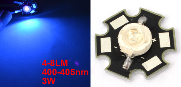 3W 400-405nm Purple Light LED Lamp Bead Emitter 4-8LM w Star Base