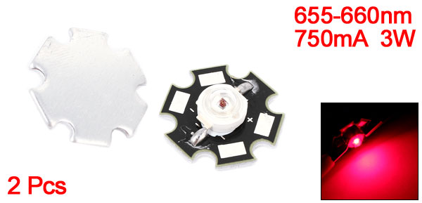 3W 655-660nm Red Light LED Lamp Bead Emitter 40-50LM w Star Base 2pcs