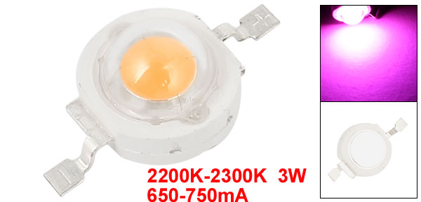 Product Name LED Lamp Bead DC Forward Voltage 3.0-3.6V DC Forward Current 650-750mA Intensity Luminous 50-70LM Color Temperature 2200K-2300K power consumption 3W Material Electronic Parts Body Size 8 x 5mm/0.31" x 0.2"(D*T) Total Length 15mm/ 0.6" Emitter Color Pink Net Weight 1g Package Content 1 x LED Lamp Bead - Reviews