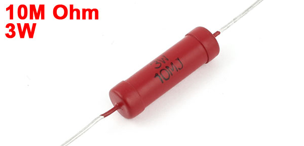 Product Name Glass Glaze Film Resistor Resistance Value 10M Ohm Resistance Tolerance +/-5% Power Rating 3W Pin Size(Each Side) 82 x 1mm/ 3.2" x 0.04"(L*D) Body Size 3 x 0.9cm/ 1.2" x 0.35" (L*D) External Material Glass Glaze, Metal Color Red, Silver Tone Net Weight 7g Package Content 1 x High Voltage Glaze Resistor - Reviews