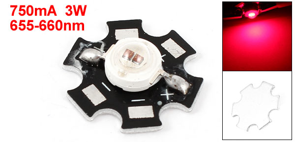 Product Name LED Emitter DC Forward Voltage 2.2-2.6V DC Forward Current 750mA Luminous Flux 45-60LM Wave Length 655-660nm Power Consumption 3W Material Electronic Parts Emitter Diameter 5mm/ 0.2'' Heat Sink Base Dia 20mm/ 0.79'' Light Color Red Net Weight 2g Package Content 1 x LED Emitter - Reviews