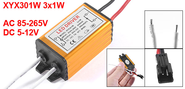 Product Name LED Drive Power Supply Model XYX301W 3x1W Input AC 85-265V 50/60Hz Output DC 5-12V 300mA±5% Body Size 4.2 x 2.5 x 2cm/ 1.65" x 0.98" x 0.8" (L*W*T) Cable Length 10cm/ 3.9", 11cm/ 4.3" Waterpoof Grade IP66 Main Material Aluminum Color As Picture Shown Weight 39g Package Content 1 x LED Drive Power Supply - Reviews