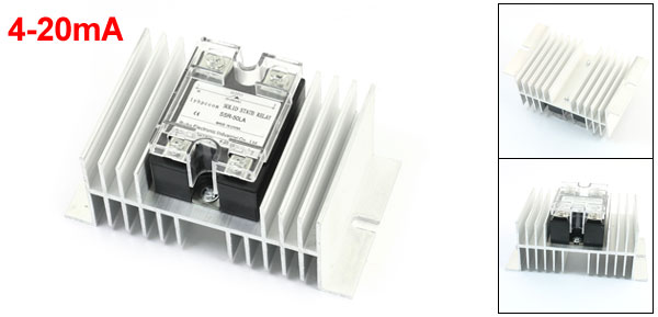 Product Name Solid State Relay w Heatsink Model No. SSR-50LA Control Resistance 4-20mA Output Voltage AC 28-280V 50A Phase Single Phase Screw Terminal 4 Fixing Hole Dia 5mm/0.2" Fixing Hole Center Distance 11.5cm/4.6" Relay Size (Approx.) 5.8 x 4.5 x 3.3cm/2.3" x 1.8" x 1.3"(L*W*H) Total Size 12.6 x 7 x 6.2cm/5" x 2.8" x 2.4"(L*W*H) Heatsink Material Aluminum, Plastic Color Silver Tone, Clear, Black Weight 286g Package Content 1 x Solid State Relay w Heatsink - Reviews