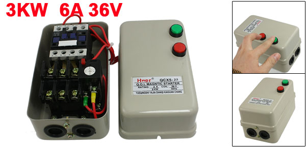 Product Name Motor Magnetic Starter Shell Material Metal Starter Coil:36V Rated Power:3KW / 4HP Rated Current:6A