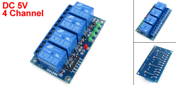 Product Name Relay Module Relay Type SRD-05VDC-SL-C Coil Voltage DC 5V Pole Number 4 Channel Load 10A, AC 250V/125V, DC 30V/28V Overall Size 70 x 43 x 20mm/ 2.8" x 1.7" x 0.78"(L*W*H) Materials Metal, Plastic, Electric Parts Main Color Blue Weight 55g Package Content 1 x Relay Module - Reviews