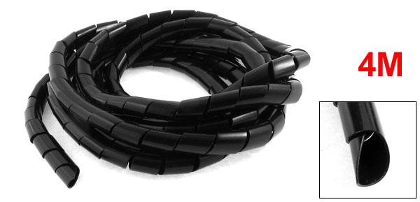 4 Meter 13.1ft 12.6mm Inner Dia Spiral Wrapping Bands Cable Manager Black
