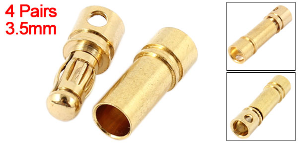 4 Pairs 3.5mm Gold Tone Metal RC Battery Bullet Banana Connector Plug