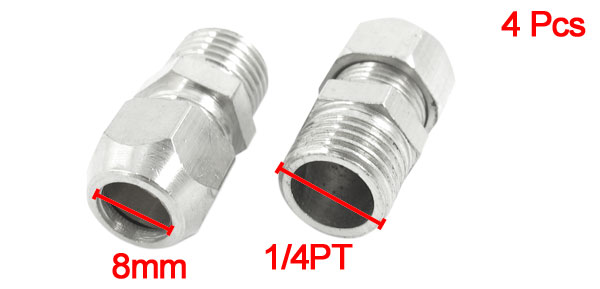 4 Pcs 1/4PT Male Thread 8mm Tube Dia Pipe Connector Adapter Joint