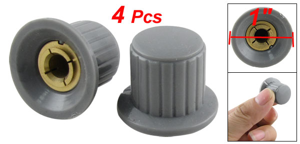Product Name Potentiometer Knob Material Plastic, Metal Color Gray Shaft Hole Dia. 5.8mm/ 15/64" Knob Top Dia. 18 mm/ 3/8" Overall Size 25 x 18mm/ 1" x 3/4"(D*H) Weight 29g Package Included 4 x Potentiometer Knob - Reviews