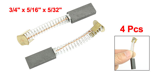 Product Name Motor Carbon Brush Material Carbon & Metal Color Black & Gold Tone Carbon Brush Size (Approx.) 19 x 8 x 4mm/ 3/4" x 5/16" x 5/32" (L*W*T) Total Length(Approx) 57mm/ 2.2" (When Spring Stretching) Net Weight 11g Package Content 4 x Motor Carbon Brush - Reviews