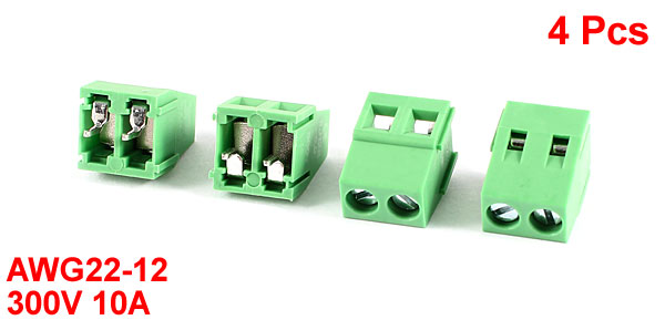 Product Name PCB Terminal Block Material Plastic Wire Gauge AWG22-12 Rated Value 300V, 10A Poles 2P Pin Distance 5mm/0.2" Total Size 18 x 11 x 10mm/0.7" x 0.43" x 0.4" (L*W*H) Color Green Weight 11g Package Content 4 x 2P PCBTerminal Block - Reviews