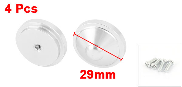 Product Name Speaker Amplifier Feet Pads Material Aluminum Alloy, Rubber Size 29x15mm / 1.14" x 0.59"(D*H) Mount Screw M4 Color Silver Tone Weight 78g Package Content 4 x Speaker Amplifier Feet Pads